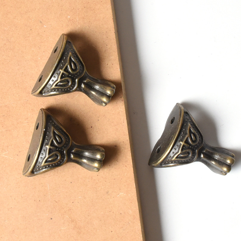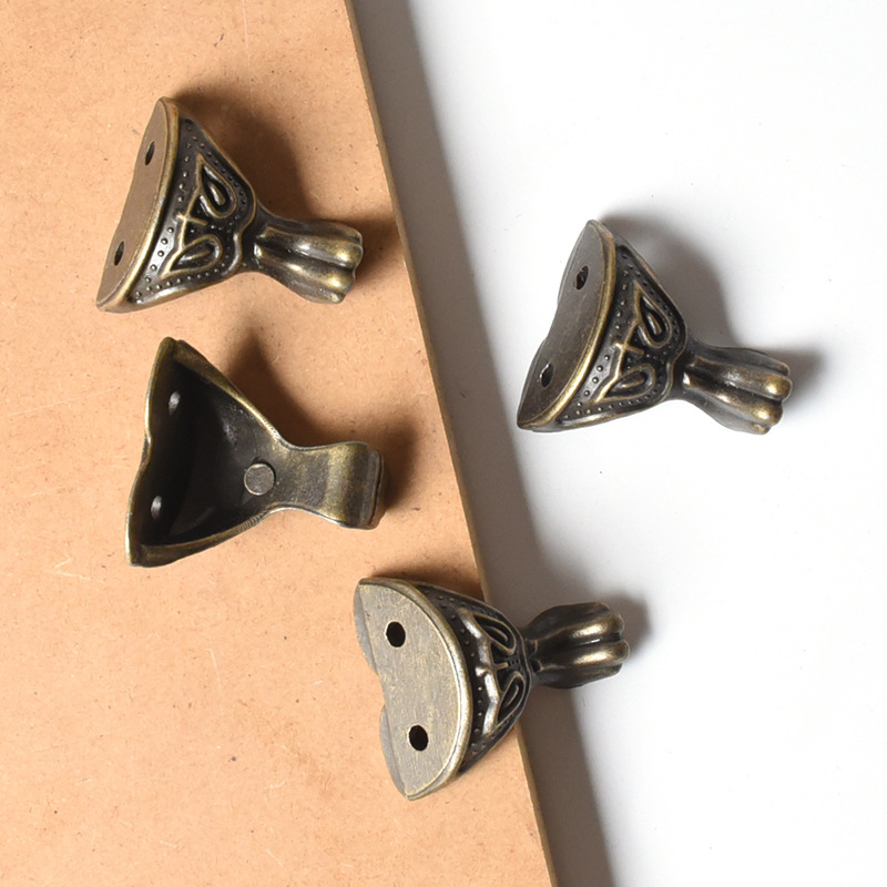 Retro zinc alloy wooden box bottom foot gift box foot protection jewelry box four side foot corner wrap